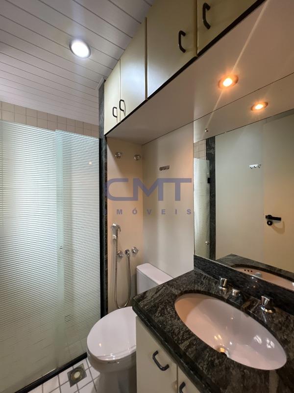 Um quarto, suíte, com armários. No banheiro também temos bancada em granito, box blindex, e armários.