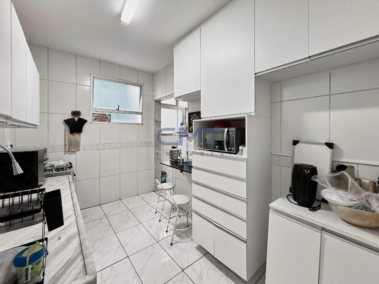 Cozinha com piso em cerâmica, bancada em granito e armários