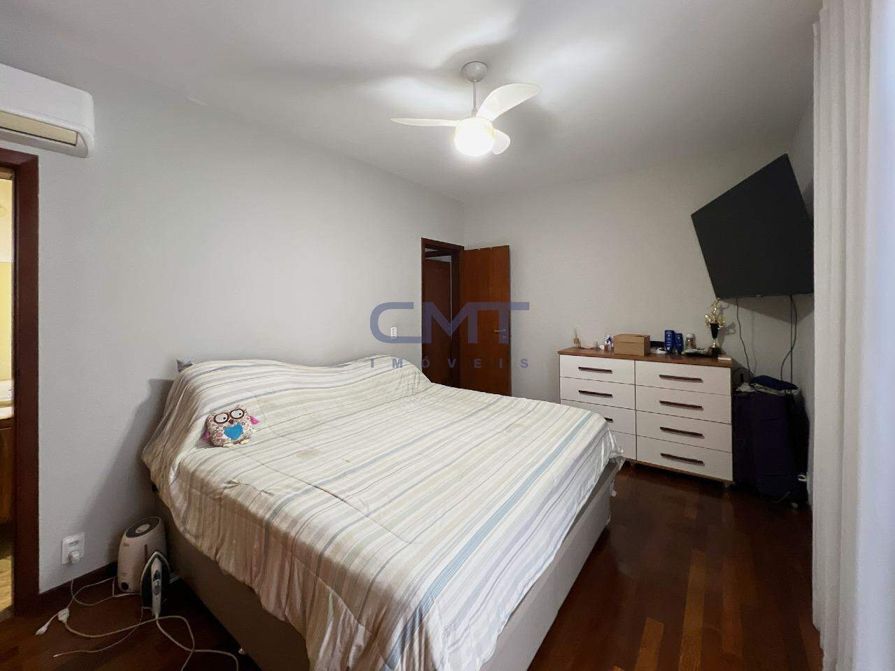 4 quartos com piso taco de madeira e armários, sendo 1 suíte