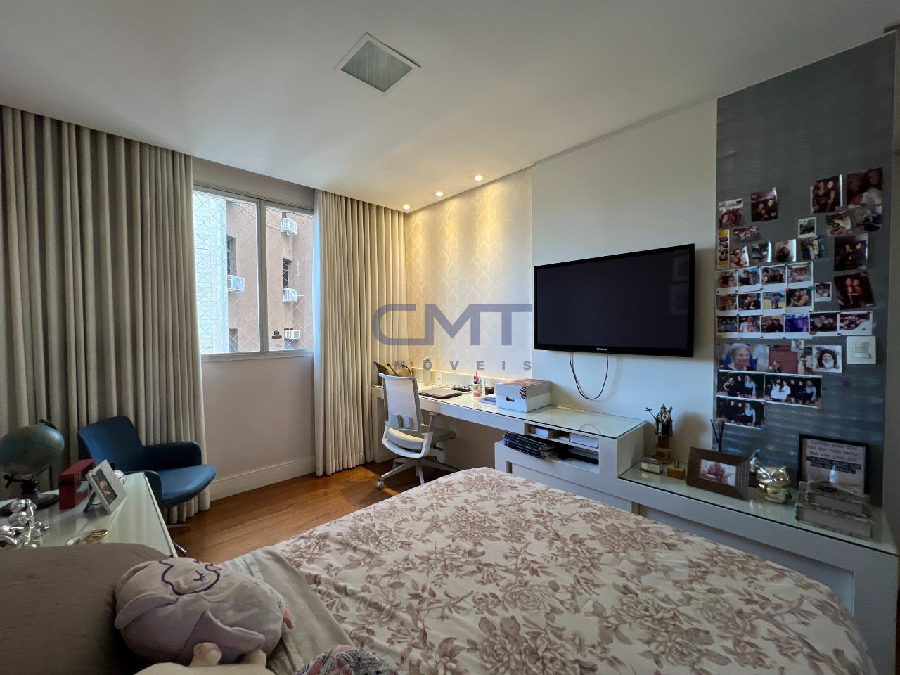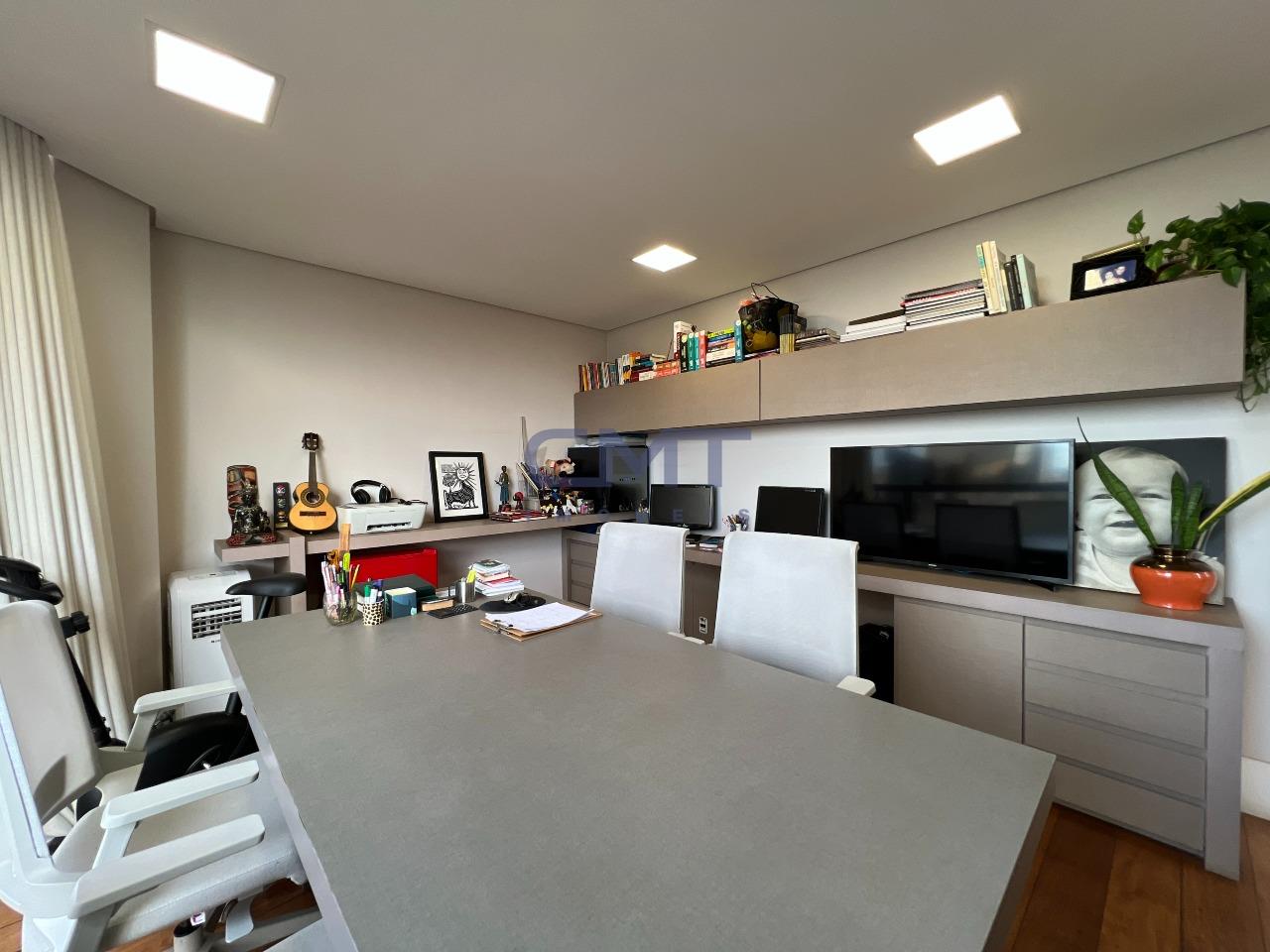 Apartamento em andar alto, 4 quartos, sendo 1 suíte com hidromassagem, sala ampla para 3 ambientes com uma vista linda. A varanda foi transformada em escritório, trazendo mais funcionalidade ao imóvel. Conta ainda com lavabo, cozinha espaçosa com armários e DCE completo.