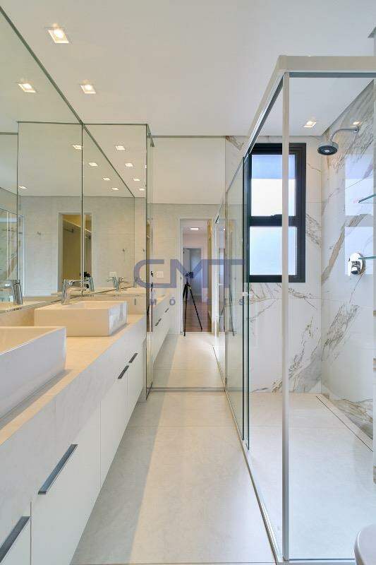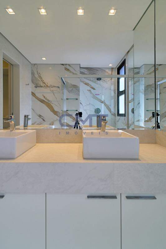 Imóvel de alto padrão, com sala para diversos ambientes com rebaixamento de teto, iluminação planejada, piso em porcelanato. Acesso à varanda gourmet em blindex transparente, proporcionando melhor ventilação e luminosidade natural no interior do ambiente. Varanda com vista para a cidade. Sala conta também com lavabo com excelente acabamento, iluminação planejada e cuba sobreposta.