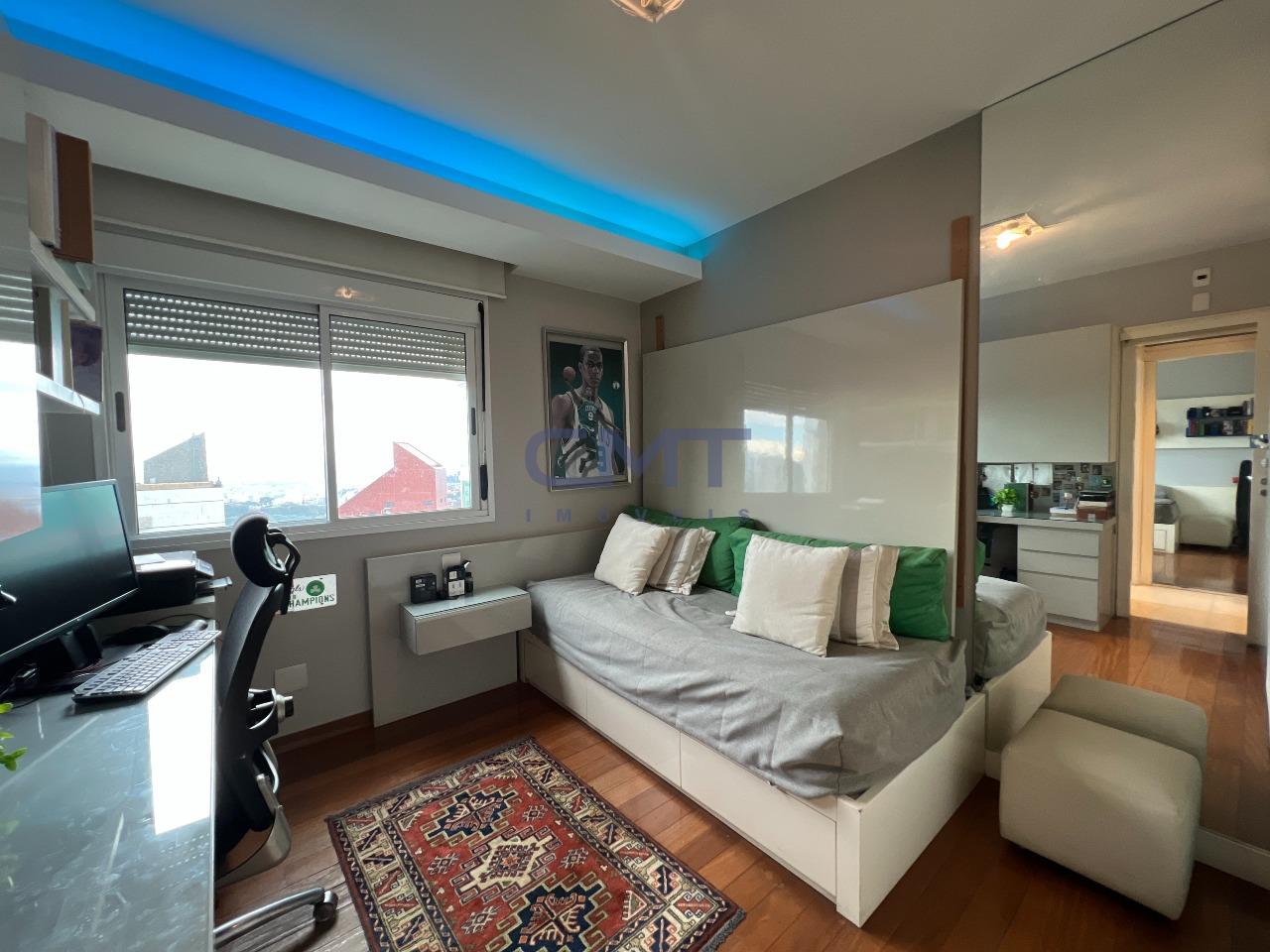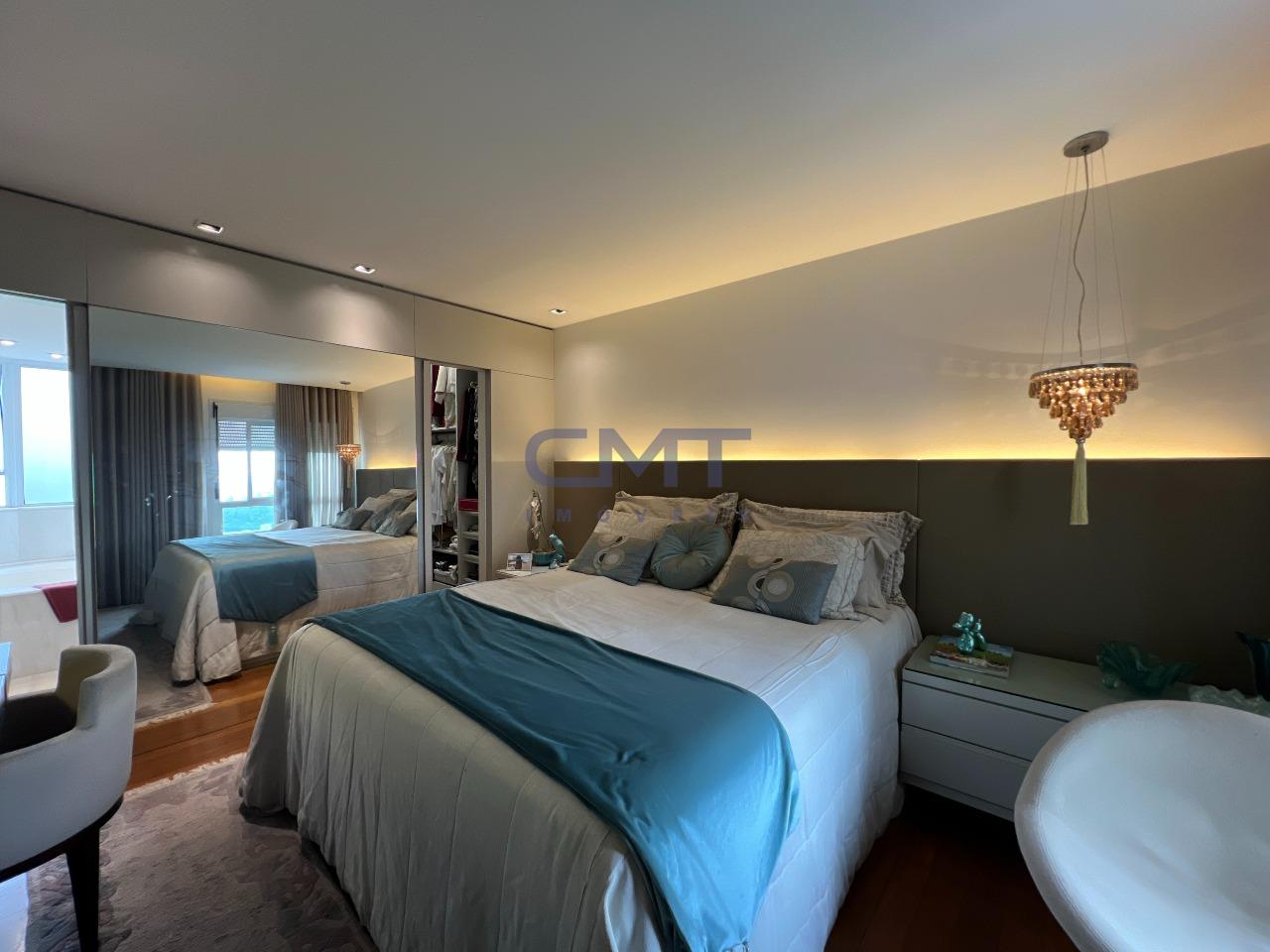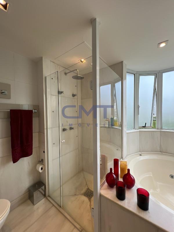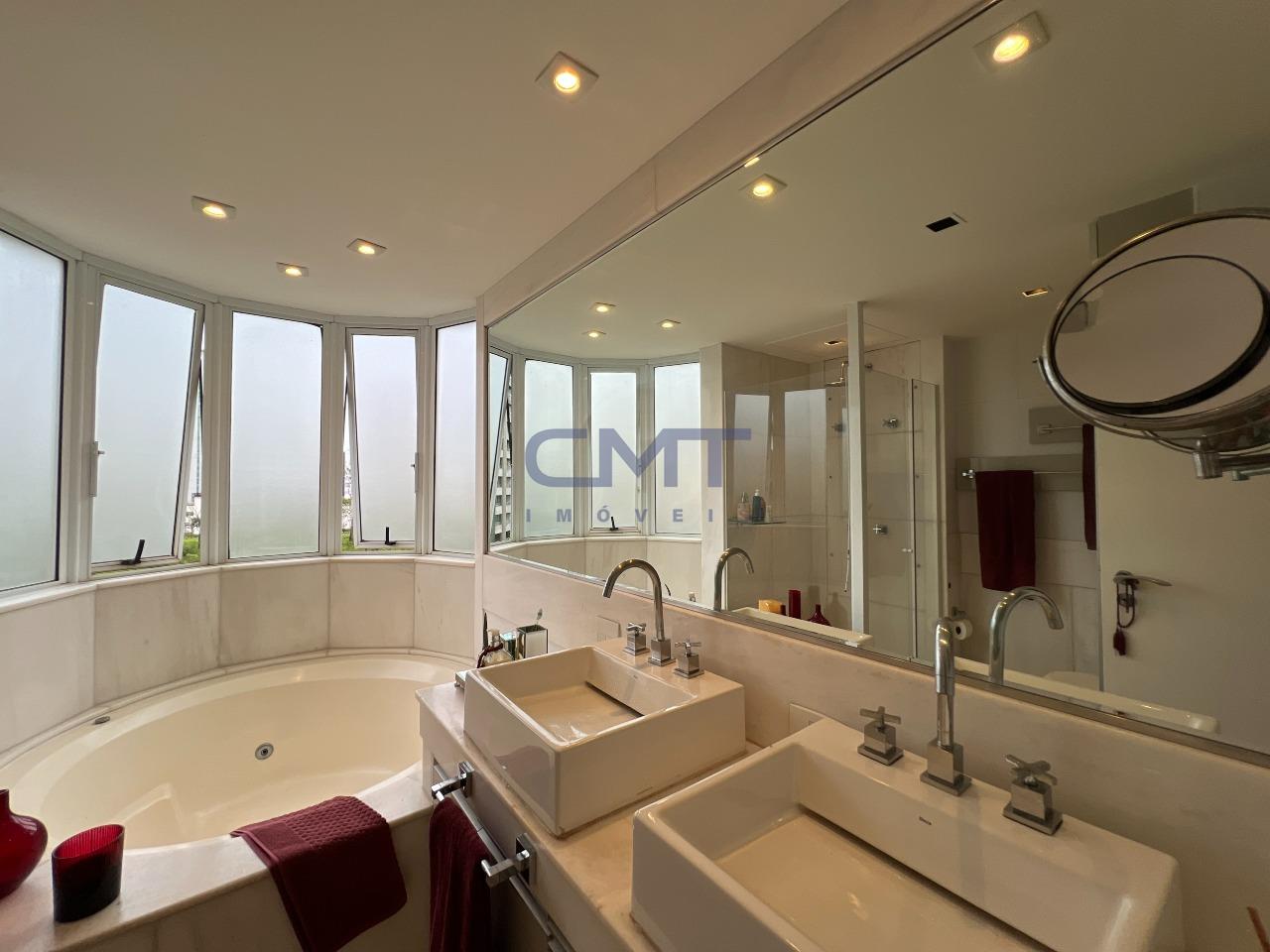 A suíte master dispõe de closet com marcenaria de alto padrão, sapateira e banheiro com hidromassagem.