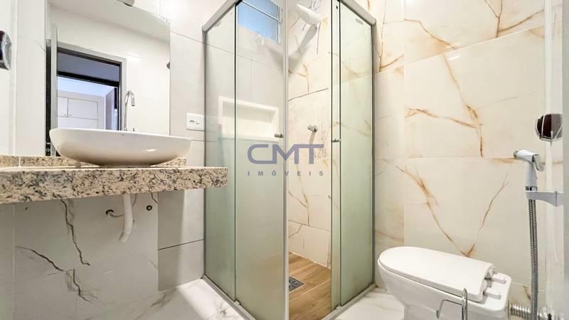 Banheiros (social e suíte) com acabamento de qualidade, espelho e box em blindex.