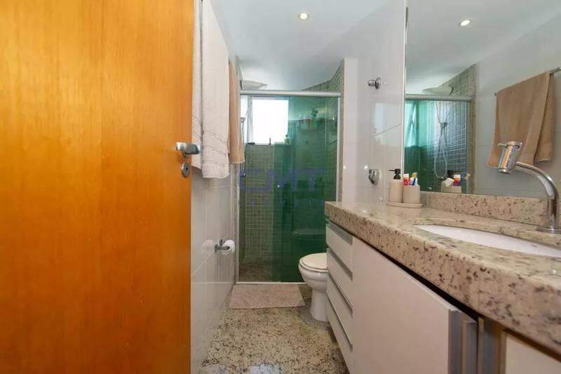 2 quartos espaçosos, todos com piso em porcelanato e armários, sendo uma suíte com bancada em granito, armários, espelho e box em blindex