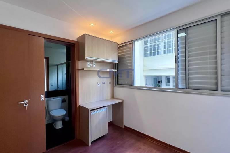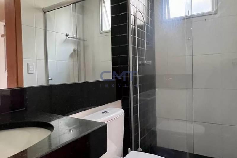 2 quartos espaçosos, todos com armário e piso vinílico de madeira, sendo uma suíte com bancada em granito, espelho, armários e box em blindex