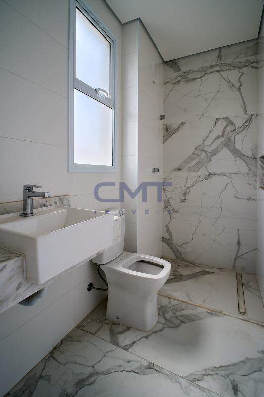 2 amplos banhos, sendo ambos suítes. Ambos com piso em porcelanato e bancada em mármore com cuba sobreposta. Armários planejados.