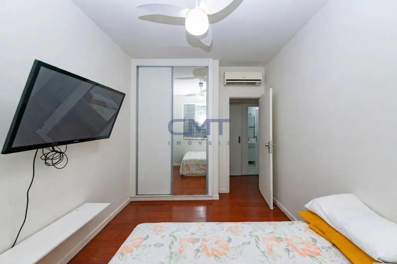 03 quartos com armários planejados e piso em tábua corrida, sendo 01 suíte com ar-condicionado.
