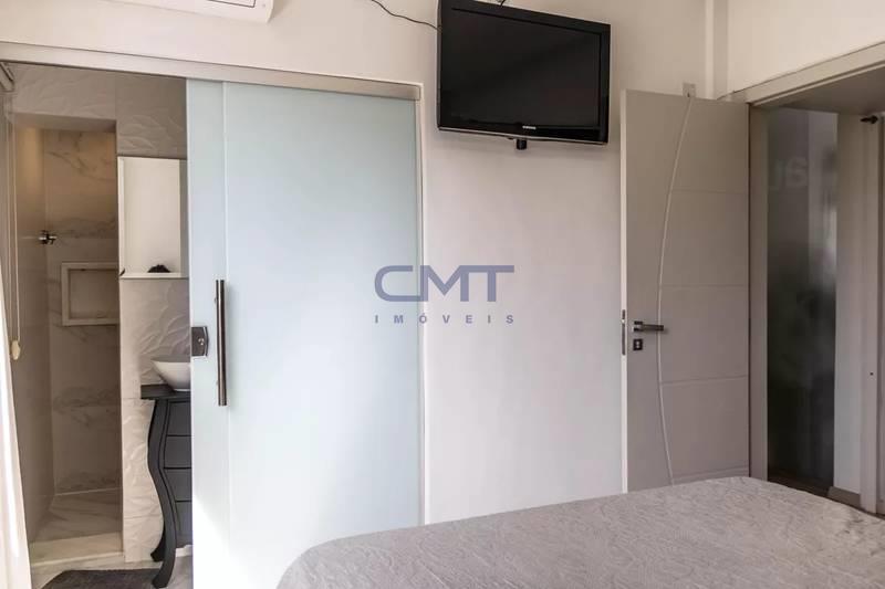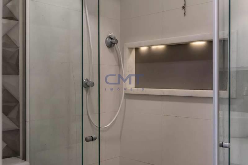 3 quartos espaçosos, todos com piso em vinílico de madeira, teto rebaixado e iluminação planejada e armários, sendo uma suíte com pia em cuba de apoio, espelho e box em blindex (a suíte vem com central de ar e TV)