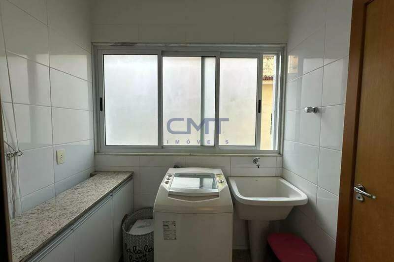 Área de serviço com tanque e bancada em granito com armários