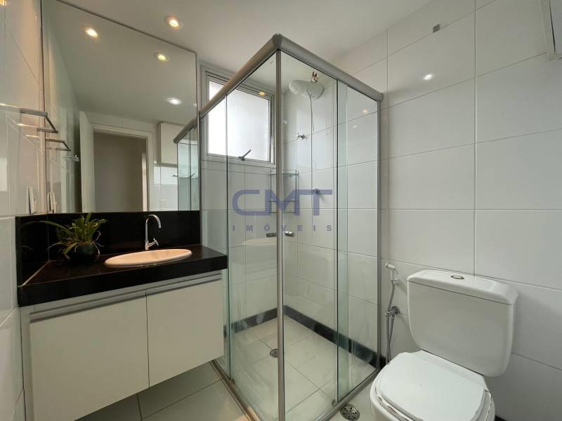 Banheiros (social e suíte) com excelente acabamento, armários, espelhos e box em blindex.