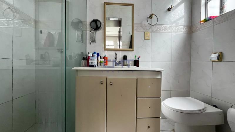 * Banheiro Social: Com bancada em granito, armário, box em vidro temperado e espelho.