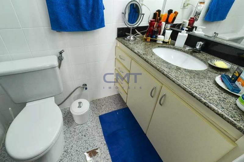 3 quartos espaçosos, todos com piso em taco de madeira, armários, sendo uma suíte com bancada em granito, armários e box em blindex