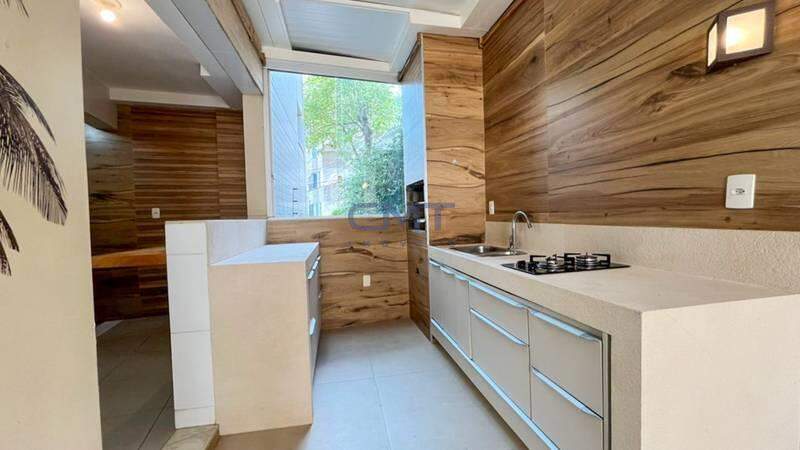 ? Cozinha ampla, clara e arejada, com bancada em granito, armários planejados, piso em cerâmica, cooktop de 5 bocas, coifa e forno elétrico.