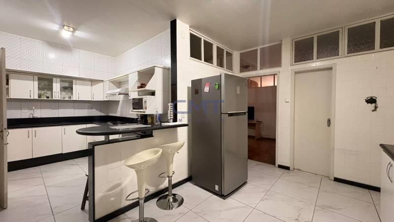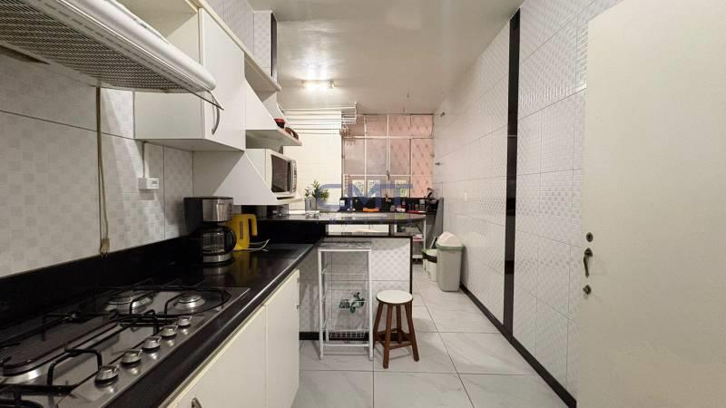 Cozinha funcional com armários planejados, bancada em granito, piso em cerâmica e despensa – recentemente reformada.