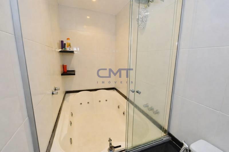 4 quartos amplos, todos com piso em taco de madeira e armários, sendo 1 suíte com bancada em granito, armários, espelho, box em blindex e banheira