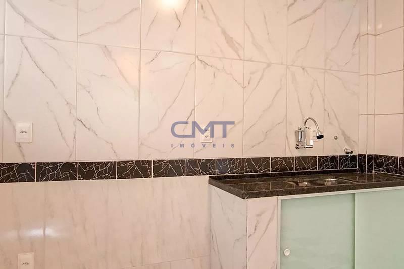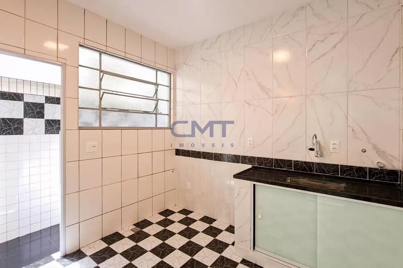 Cozinha ampla com bancada em granito, revestimento completo em cerâmica e armários