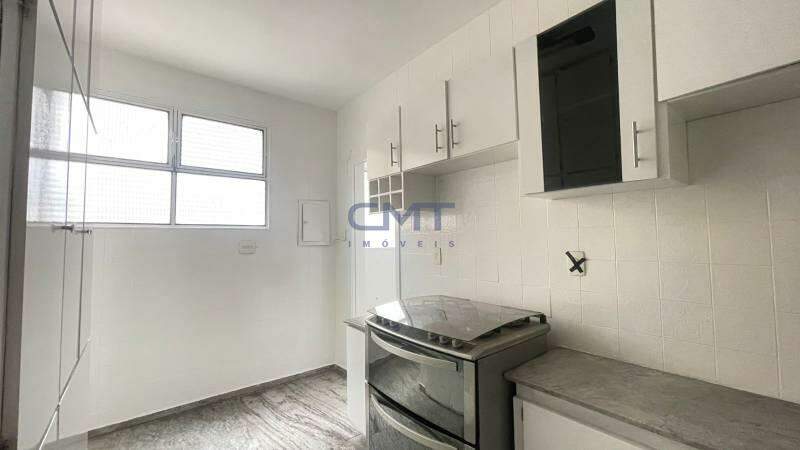 Cozinha com armários embutidos, piso e bancadas em granito, revestimento em cerâmica