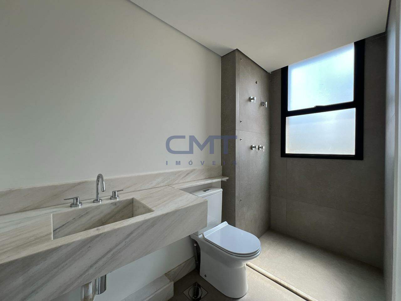 Banheiro social com bancada em mármore