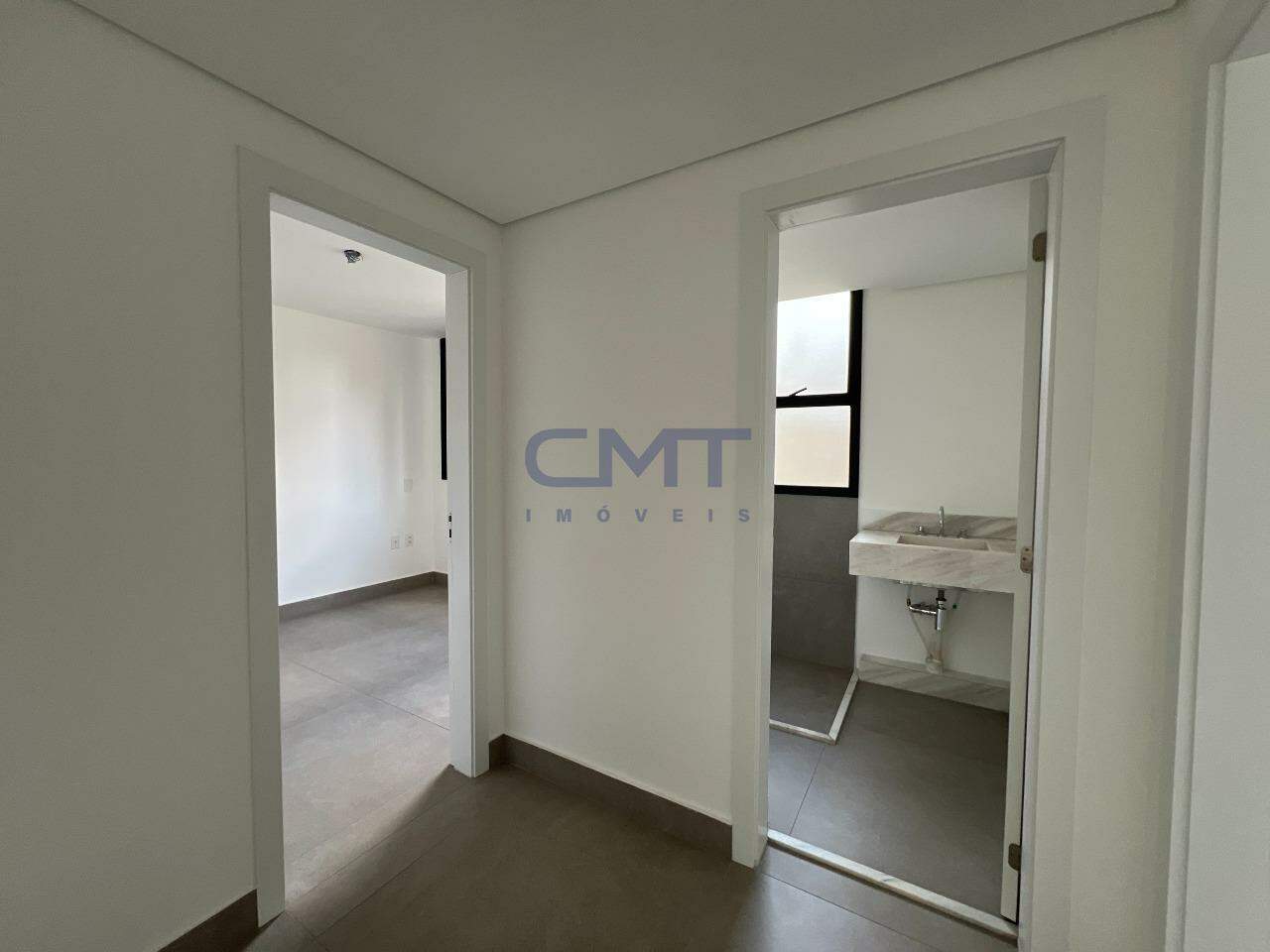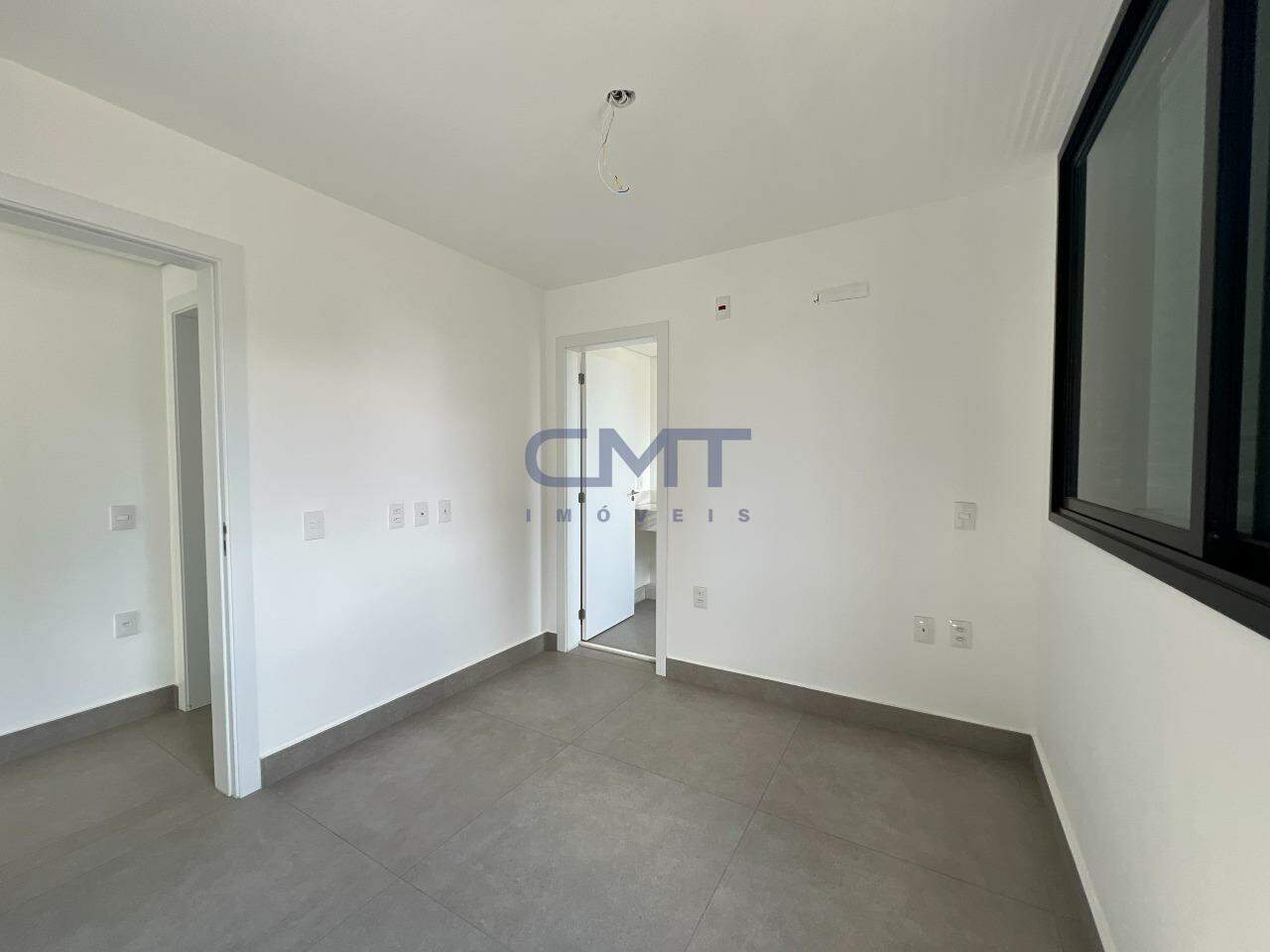 4 Quartos amplos com piso em porcelanato, sendo duas suítes com bancada em granito