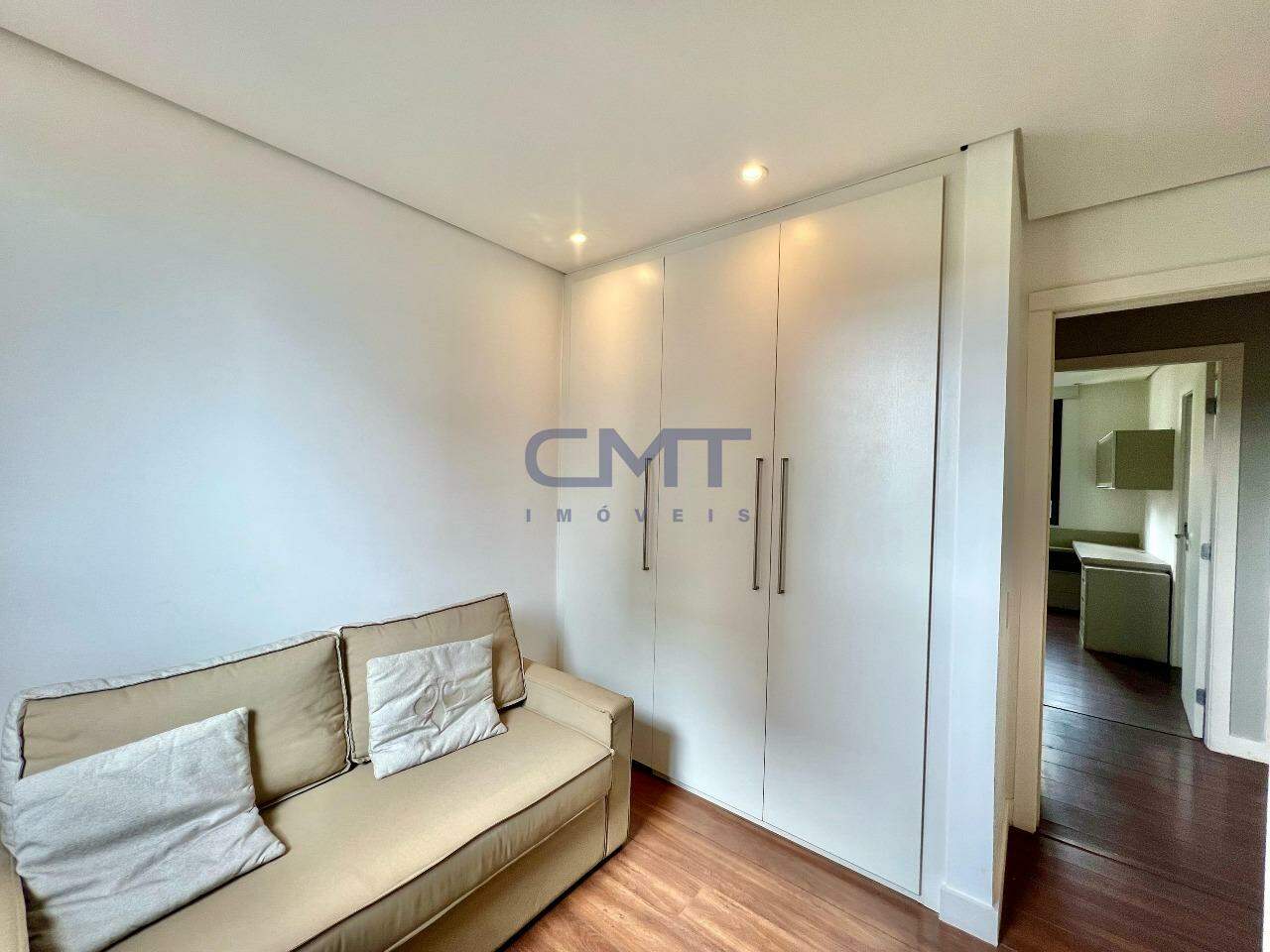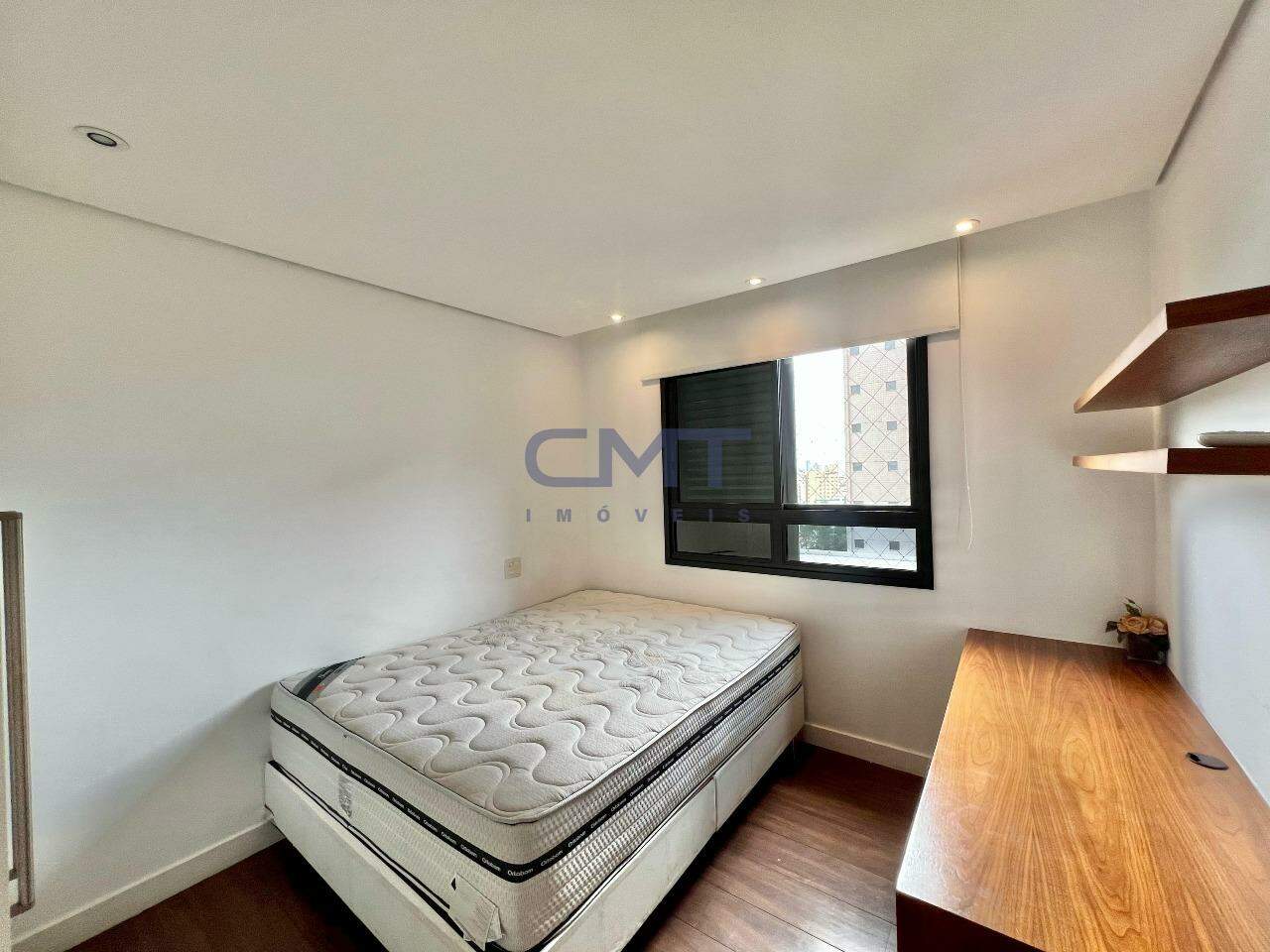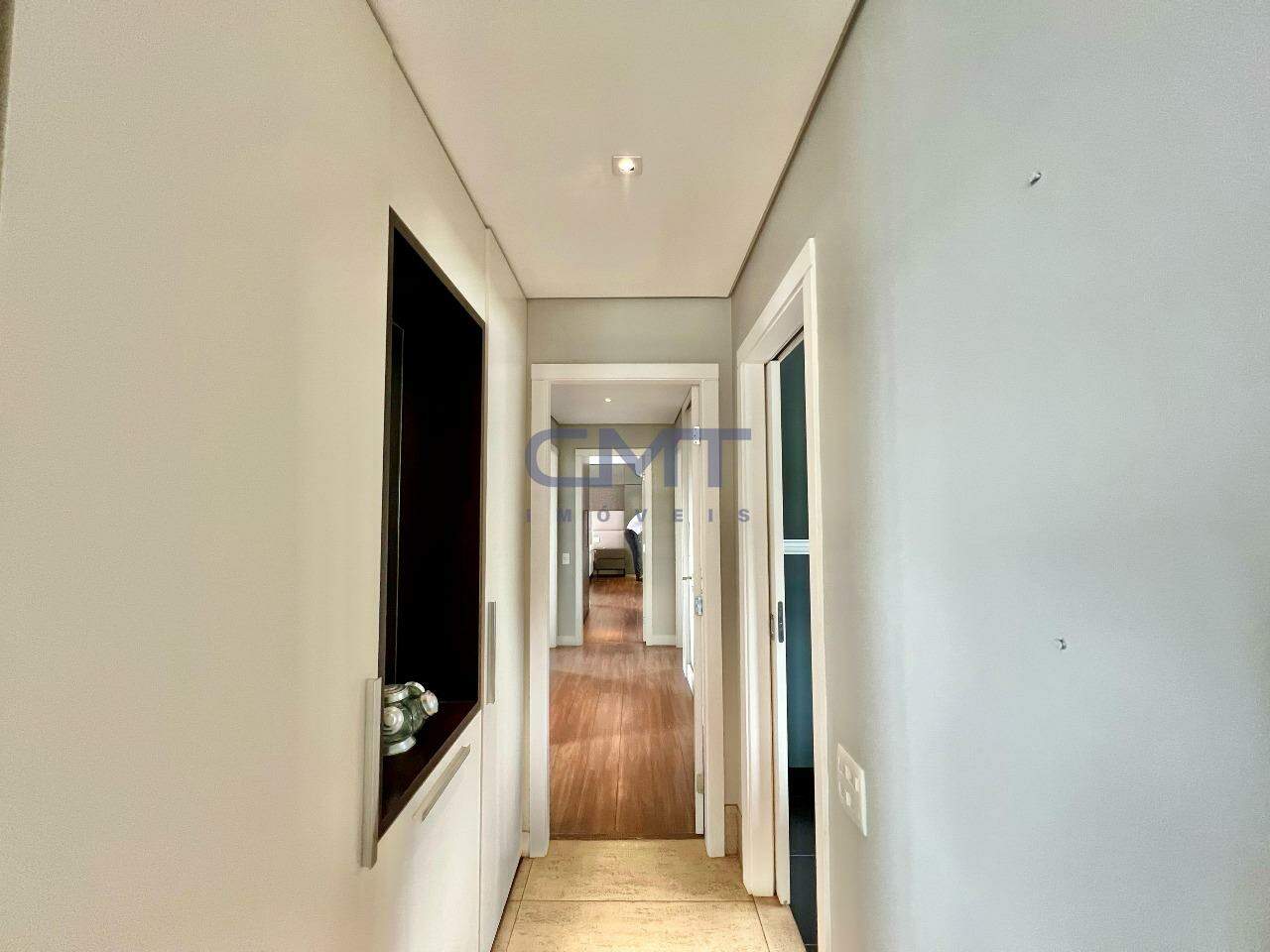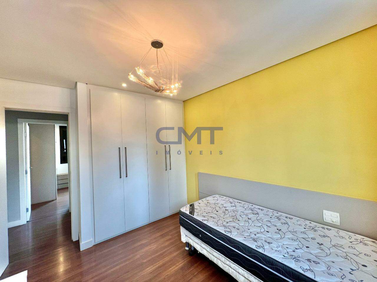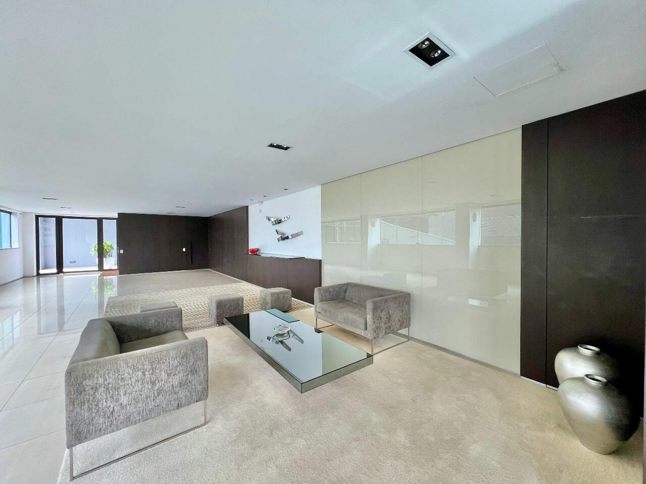 Sala para dois ambientes com rebaixamento de teto e projeto luminotécnico, lavabo. Quatro quartos com armários planejados, sendo duas suítes, uma delas máster com closet. Banheiro social com armário sob bancada em granito e box em vidro temperado. Cozinha mobiliada com armários planejados e bancadas em granito/porcelanato. Área de serviço independente e dependência completa de empregada (DCE). Piso dele variado: porcelanato, laminado, cerâmica e granito, conforme ambiente.