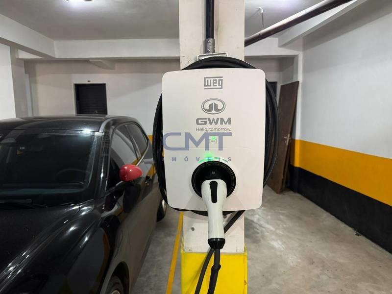 São 3 vagas de garagem cobertas no pilotis, sendo 2 livres e 1 presa, além de carregador para veículo elétrico instalado na vaga do apartamento.