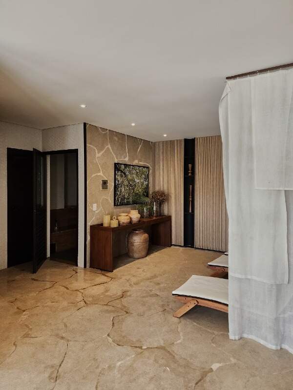São 4 quartos, sendo duas suítes e duas semi-suítes, todos com ar-condicionado.