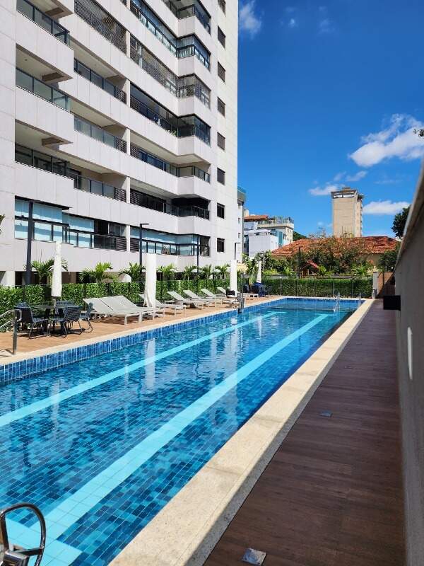 Este apartamento de 146 m² no Infinity Art Residence é uma experiência completa de morar bem: sala ampla para dois ambientes, iluminação planejada, lavabo elegante e uma varanda generosa com vista panorâmica definitiva para a Serra do Curral e toda a região Centro-Sul de Belo Horizonte.