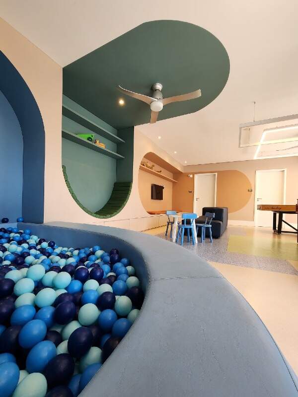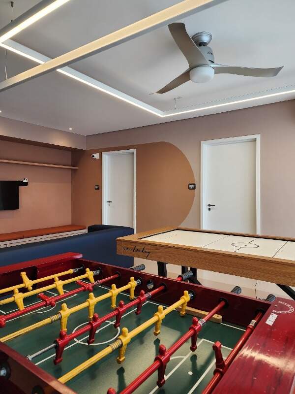 Quadra poliesportiva, salão de jogos, brinquedoteca e playground