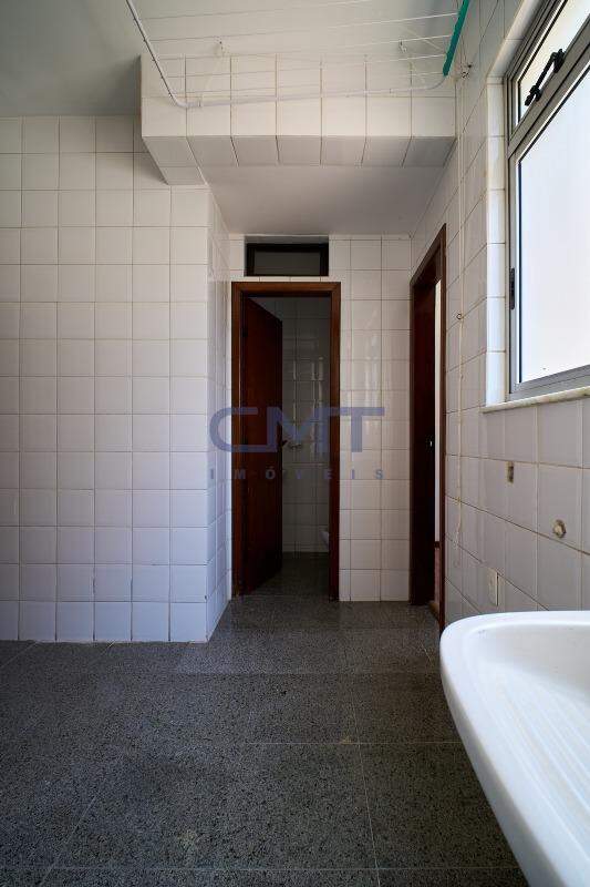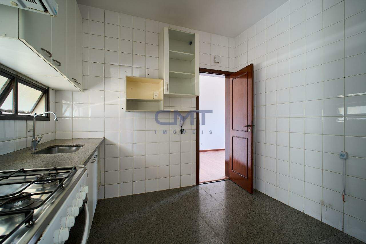Cozinha ampla com piso e bancadas em granito. Armários planejados em ótimo estado de conservação. Acesso independente à área de serviço, com piso e bancada em granito, quarto e banheiro de serviço.