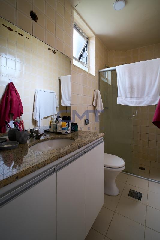 2 amplos banhos, sendo 1 suíte, e 1 social. Ambos com box em blindex transparente, armários planejados, piso em cerâmica e bancada em granito.