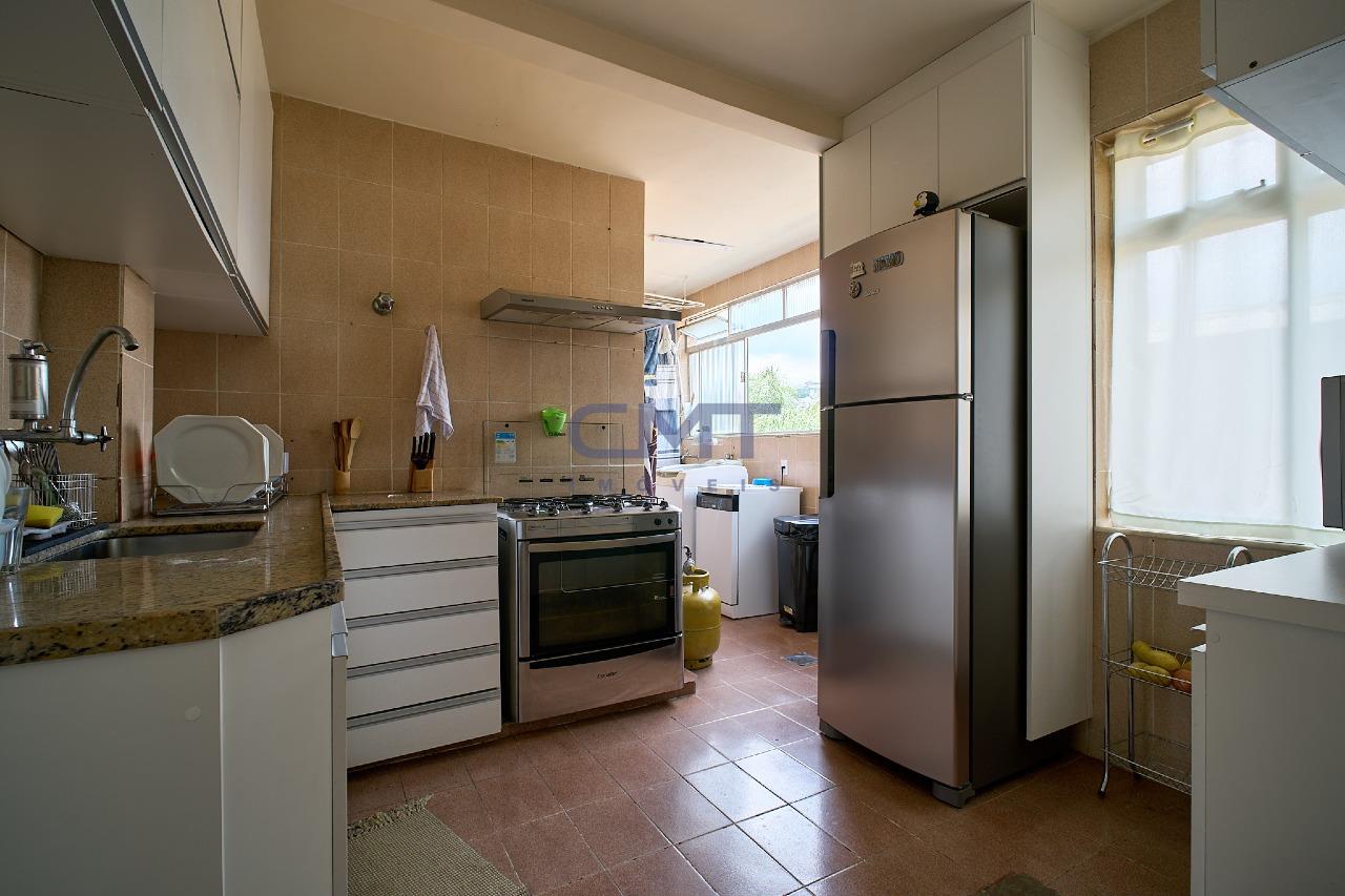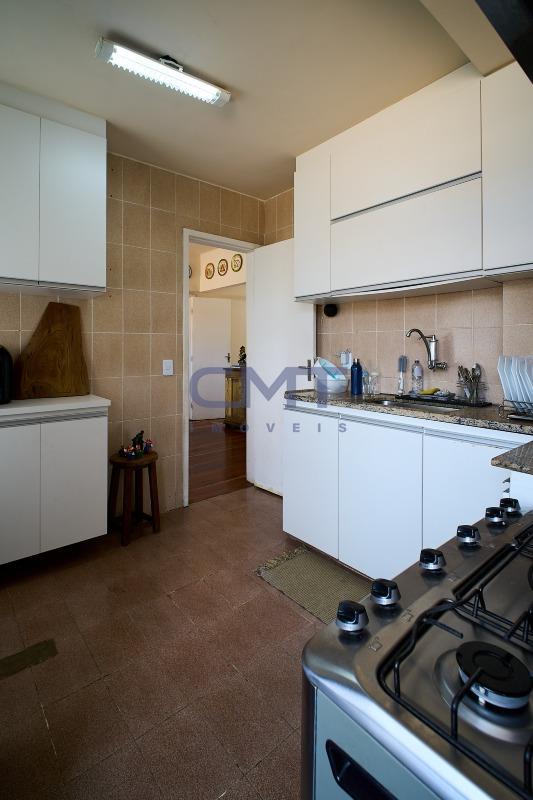 Cozinha americana ampla com piso em cerâmica, bancadas em granito e armários planejados. Área de serviço, com piso em cerâmica, bancada em granito, quarto e banheiro de serviço.
