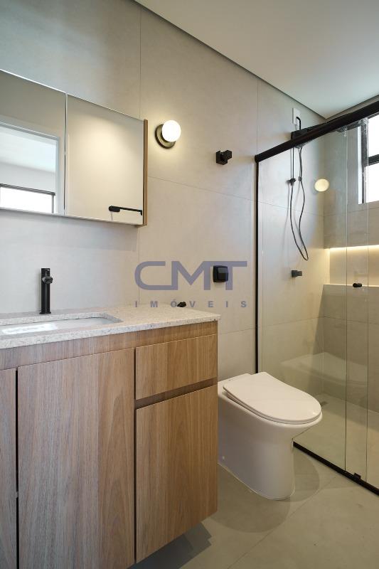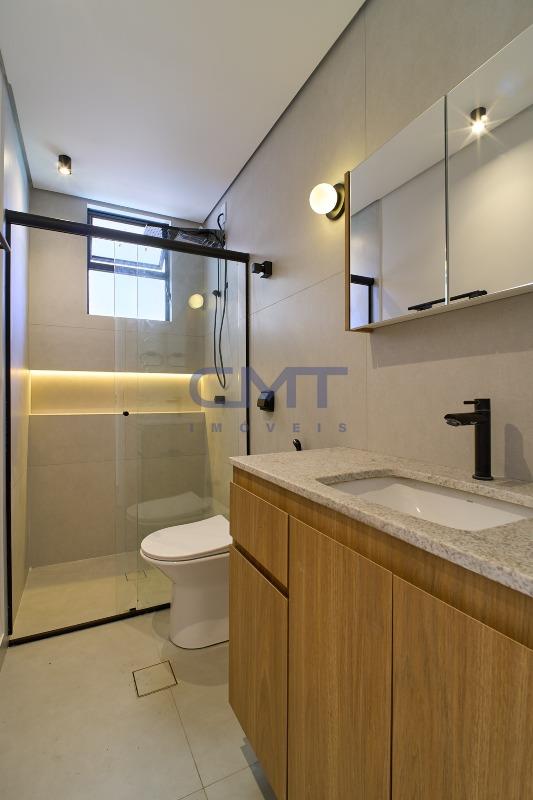 2 amplos banhos, sendo 1 suíte, e 1 social. Ambos com box em blindex transparente, armários planejados, piso em porcelanato e bancada em granito.