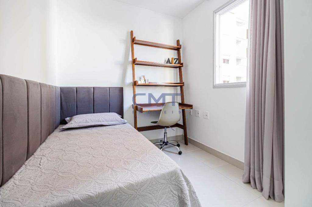 Dois quartos amplos, bem claros e arejados, compostos por armários planejados, vários pontos de energia, um deles com acesso à varanda, linda vista, piso em cerâmica e parede em pastilha, região centro-sul