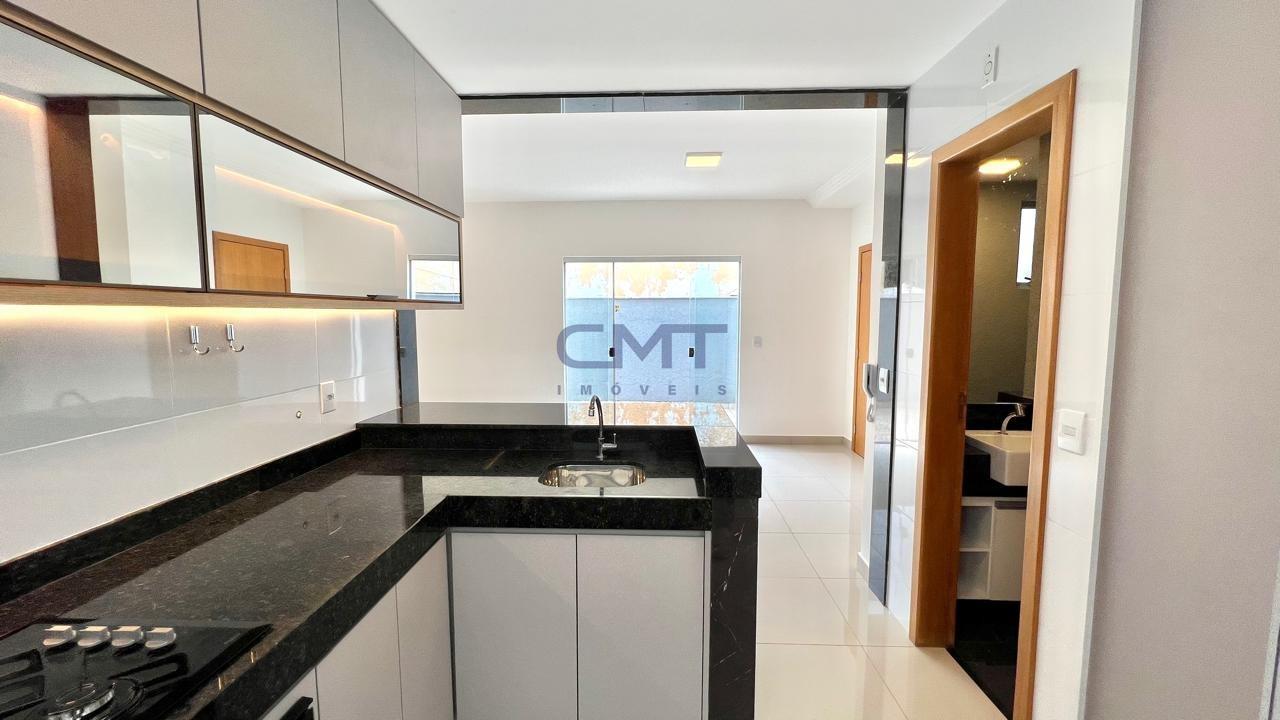 • Cozinha americana equipada com bancada em granito e piso em porcelanato, unindo funcionalidade e sofisticação.
