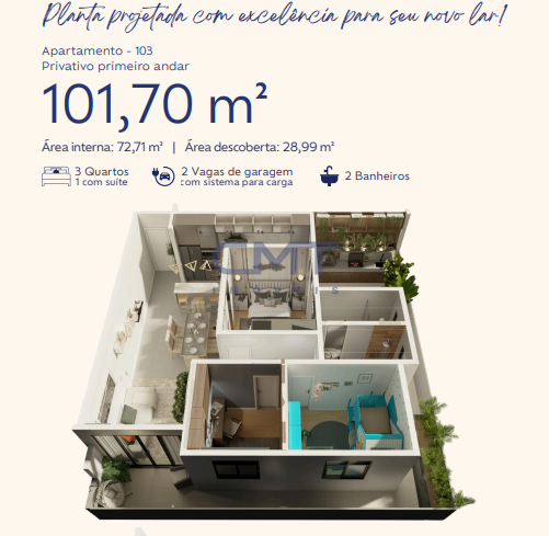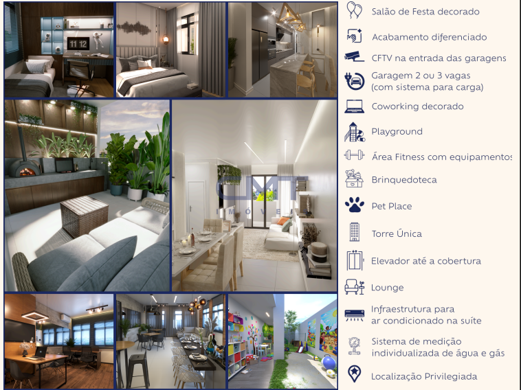 Principais Diferenciais: Diversas áreas comuns, acabamento alto padrão, garagem coberta, e prédio 100% revestido em material alto padrão.