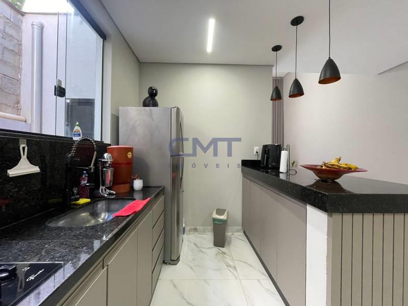 Cozinha funcional, equipada com armários planejados e bancada em granito.