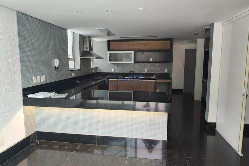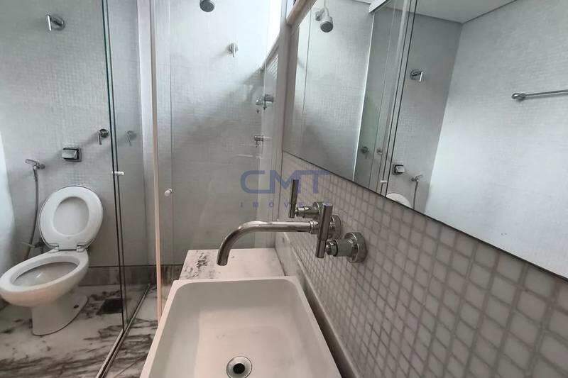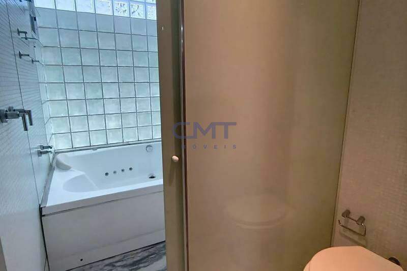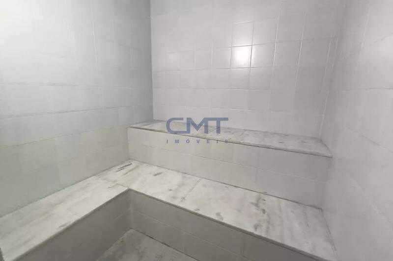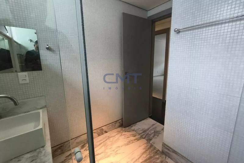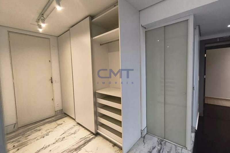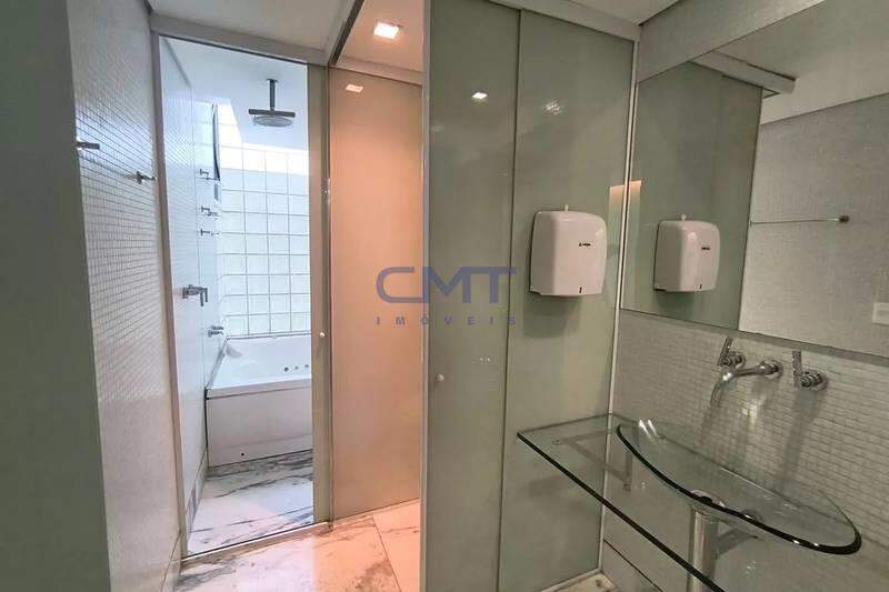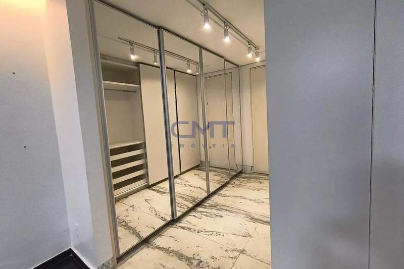 4 quartos espaçosos, todos com piso em porcelanato, armários, teto rebaixado e iluminação planejada, sendo três suítes com closet, bancada em granito, espelho, armários, banheira e box em blindex