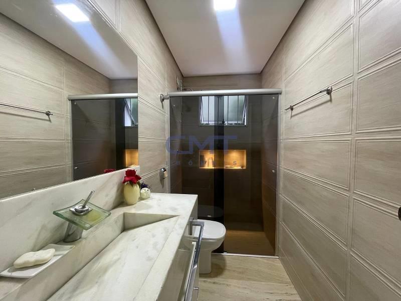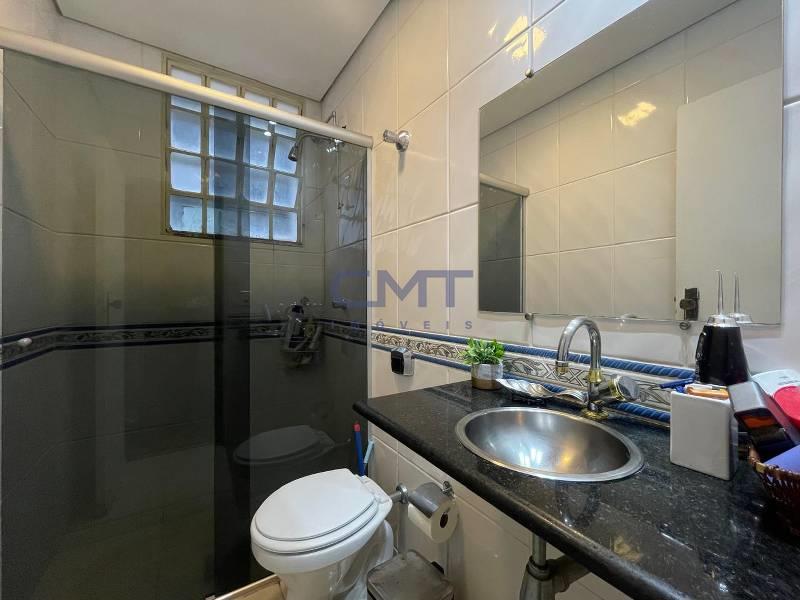 2 banhos sociais com excelente acabamento, espelho e box em blindex.