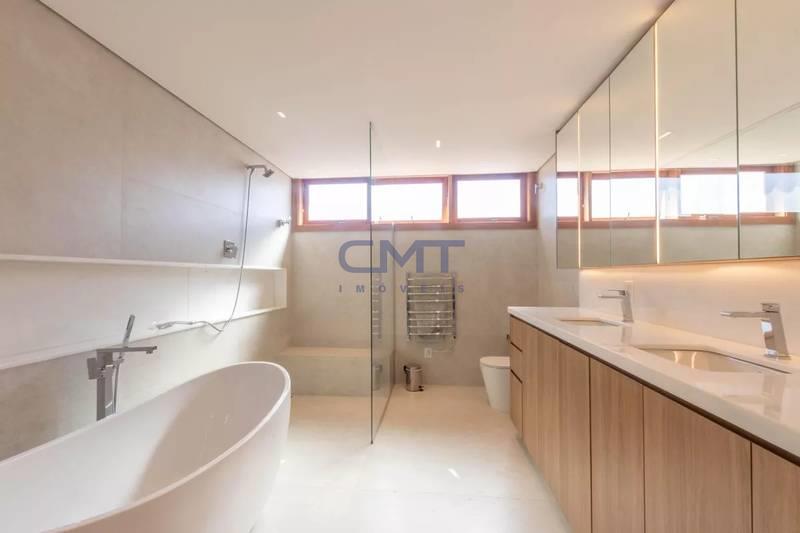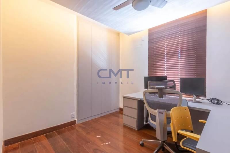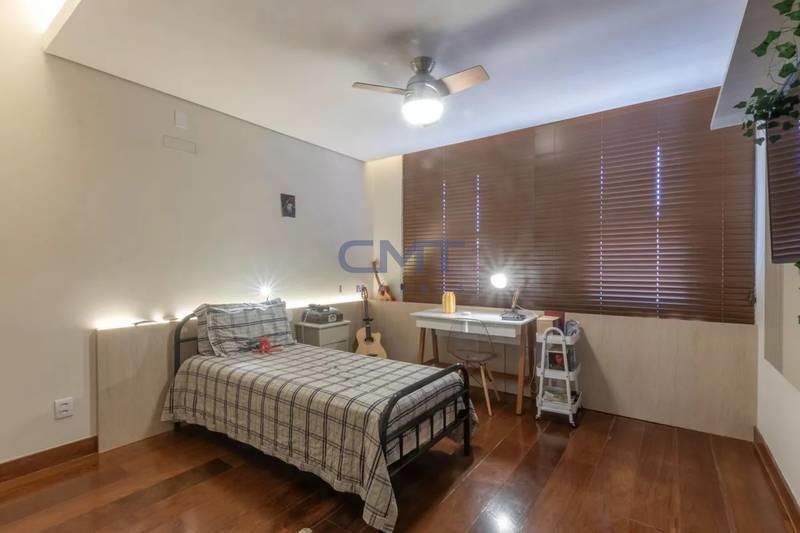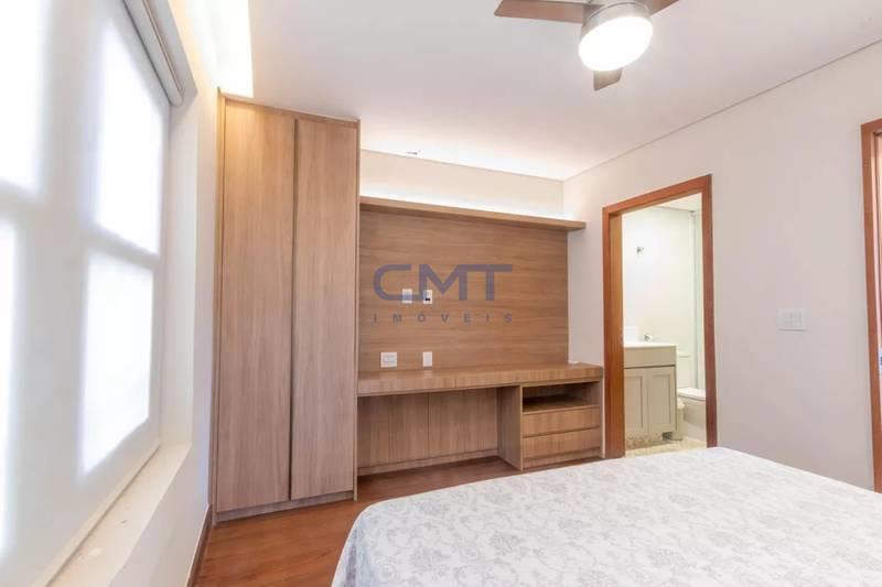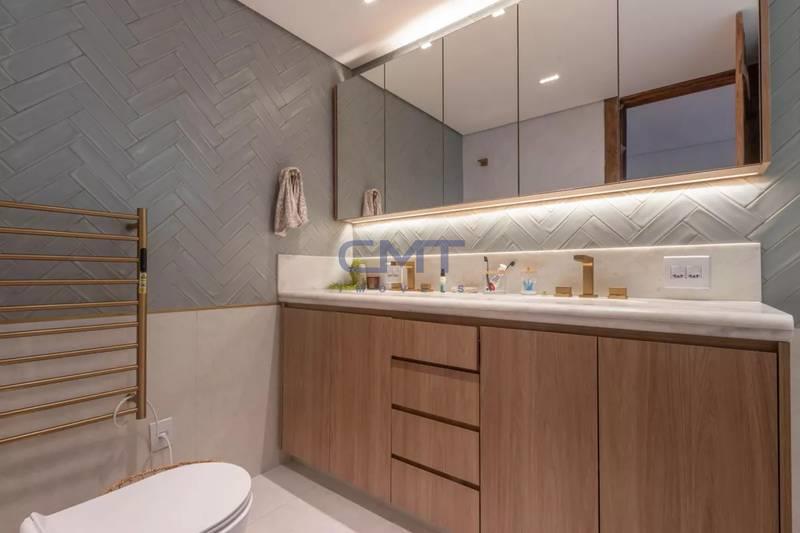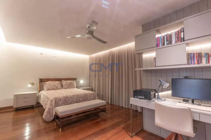05 quartos com armários planejados e piso em tábua corrida, sendo 02 suítes, com destaque para a suíte master, que possui closet com iluminação personalizada e banheira de hidromassagem.