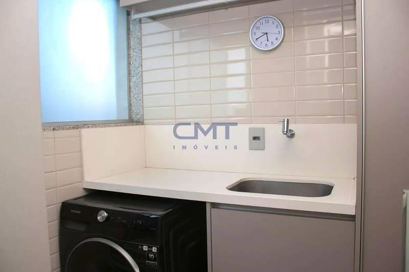 Área de serviço com tanque e armários planejados.