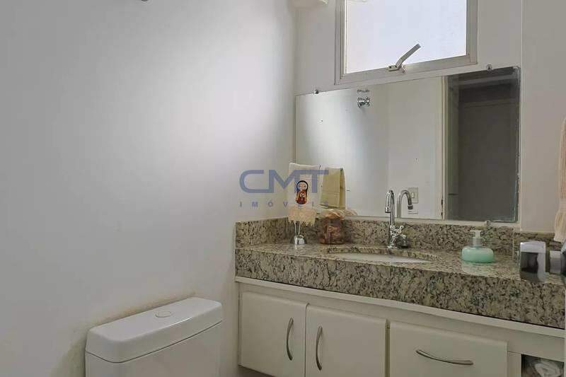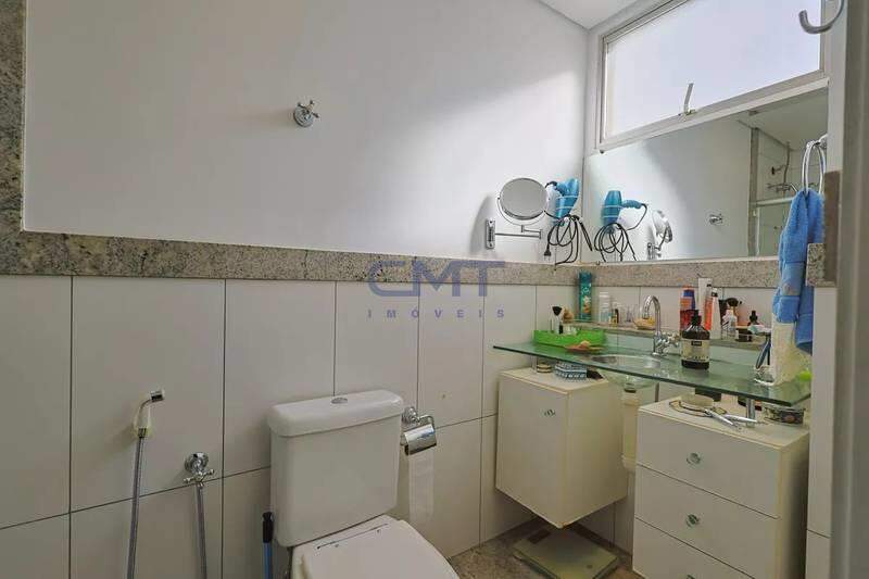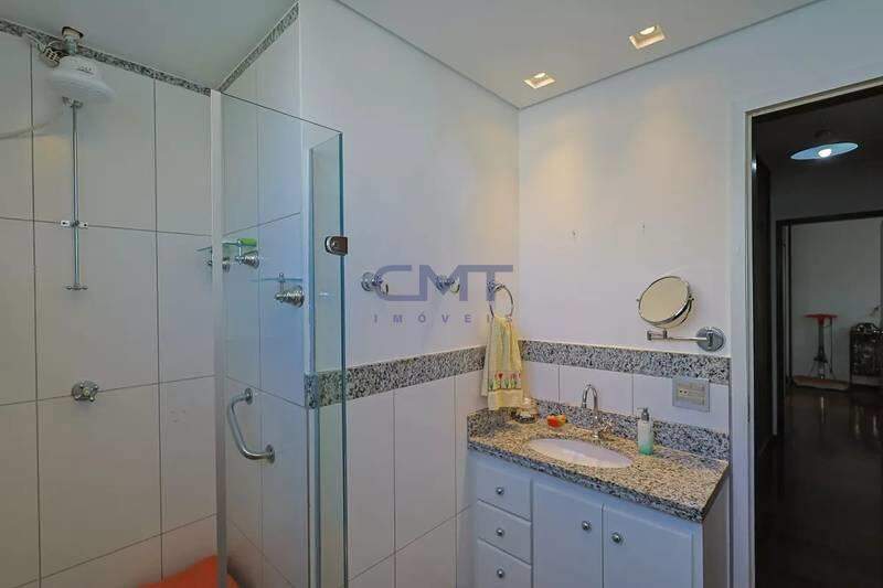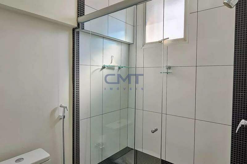 Banheiros (social e suíte) com ótimo acabamento, armários, espelhos e box em vidro temperado.
