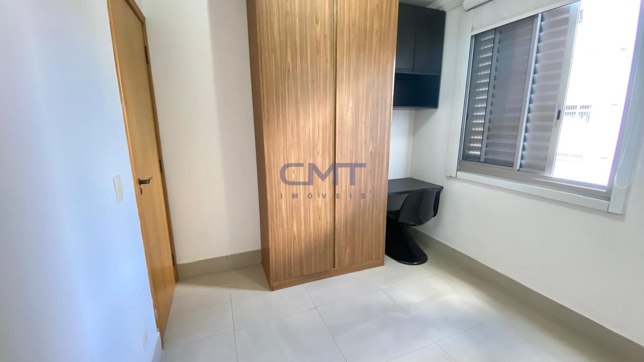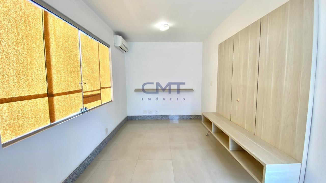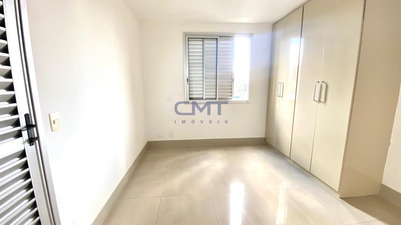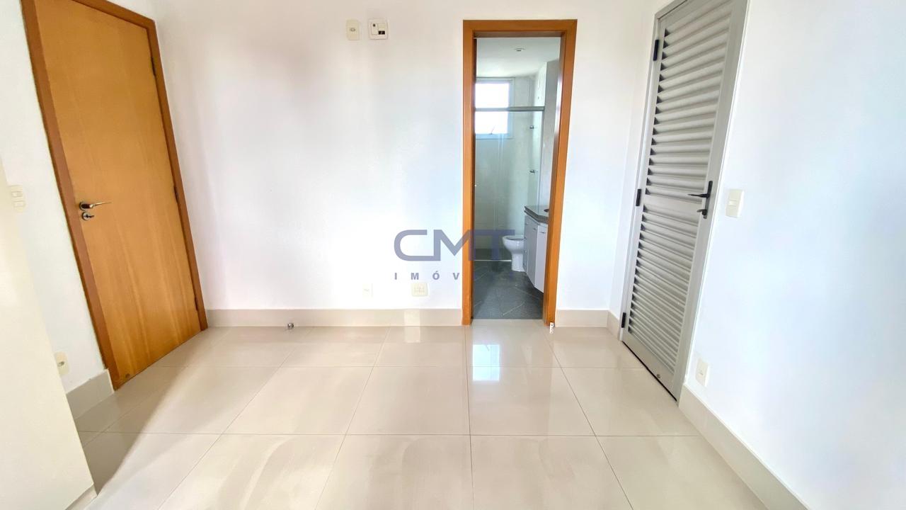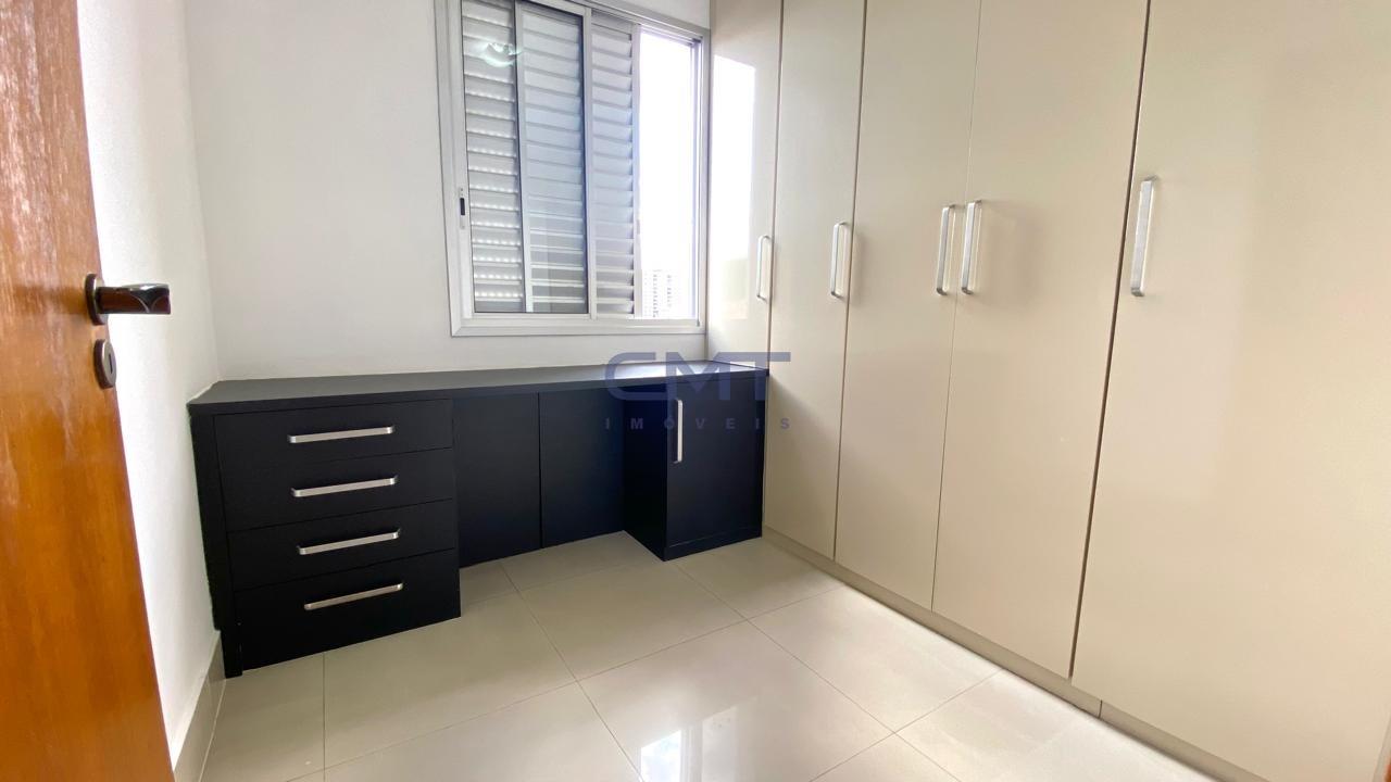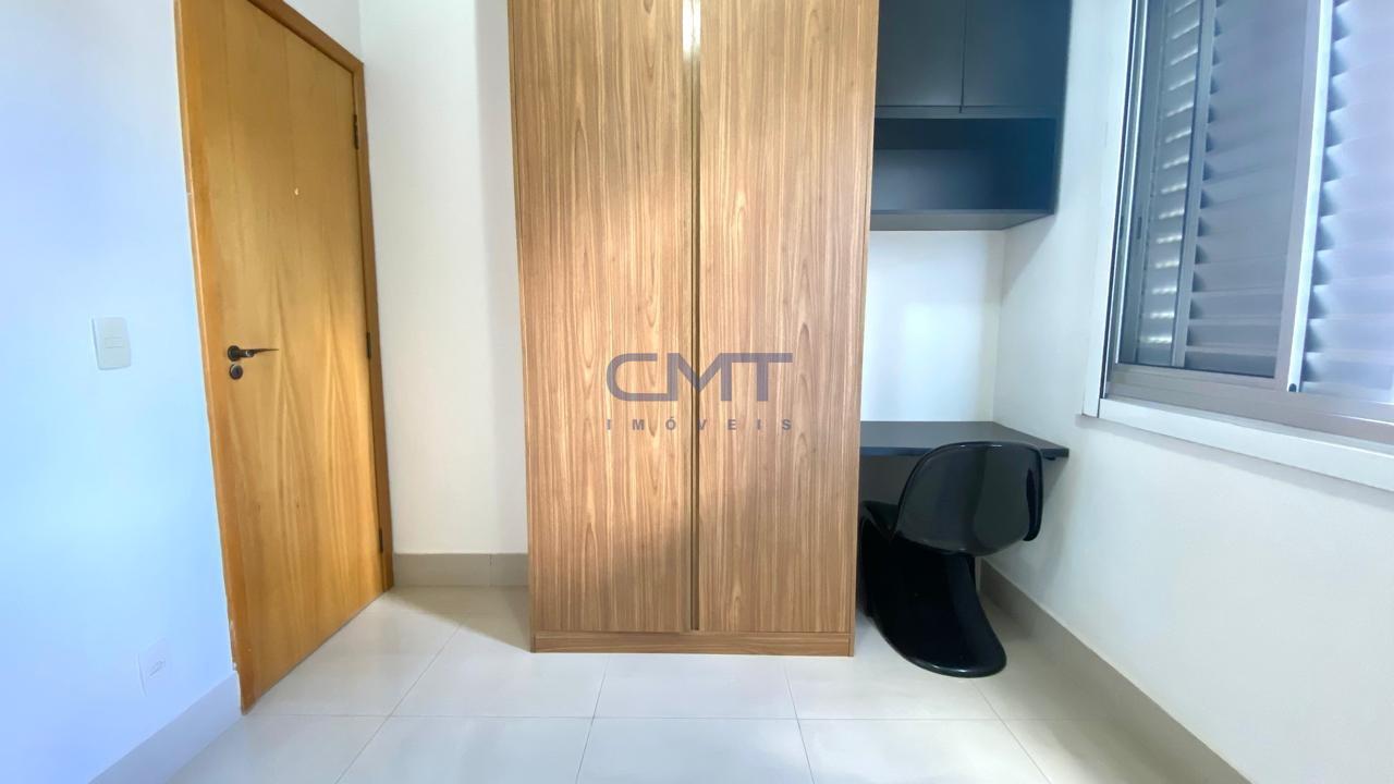 Três quartos com piso em porcelanato, armários planejados e uma suíte