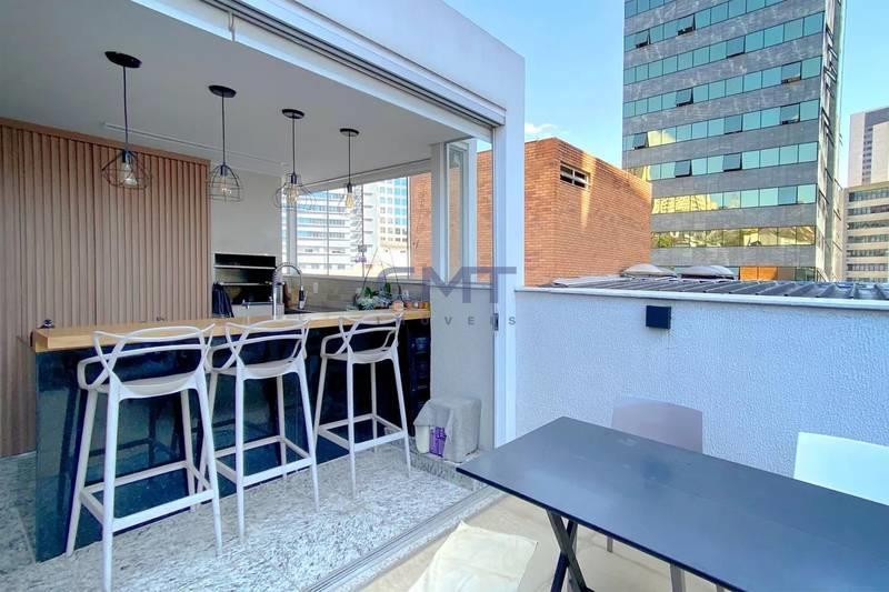 Cobertura com espaço gourmet, churrasqueira, piscina e área de serviço.