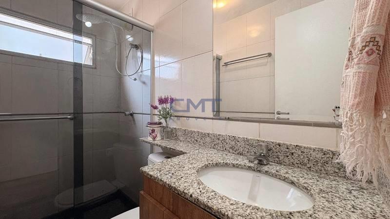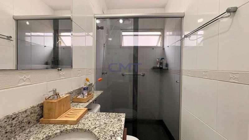 Banheiros (social e suíte) com armários, box em vidro temperado, bancadas em granito.