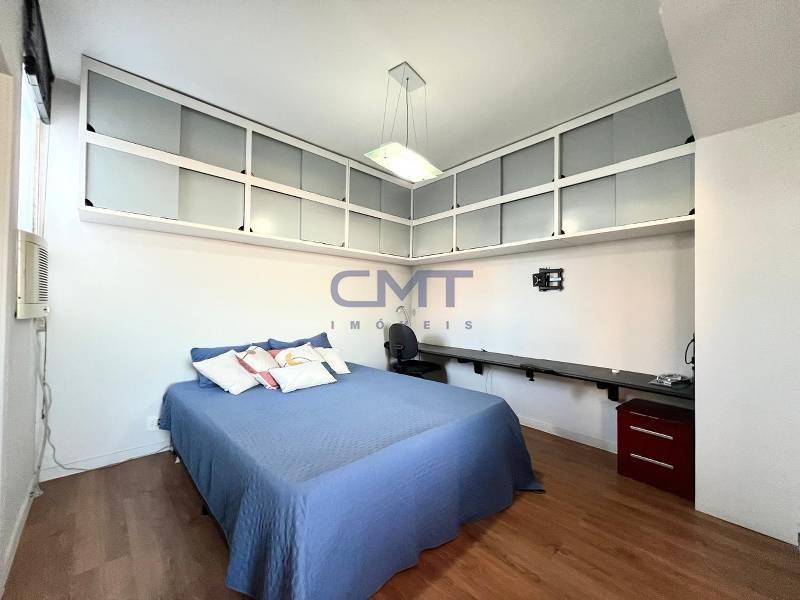 02 quartos com armários planejados e piso em laminado de madeira, sendo 01 suíte. Um quarto adicional foi integrado ao imóvel e transformado em um closet funcional.