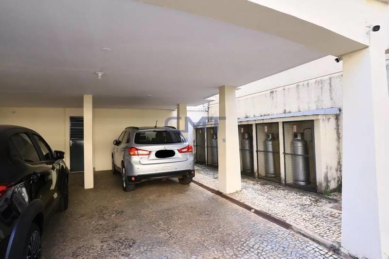 02 vagas em linha, cobertas e demarcadas, com box de despejo.