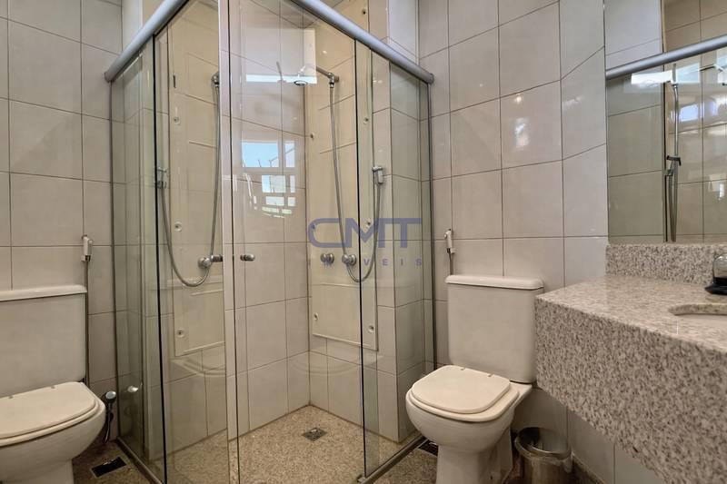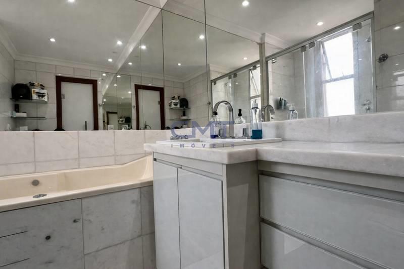 04 quartos com piso em laminado de madeira e armários planejados, sendo 02 suítes com ar-condicionado, além outra suíte máster que se destaca pelo amplo closet e banheira de hidromassagem. Banheiros das suítes equipados com box em vidro blindex, armários sob bancada e acabamento em granito.