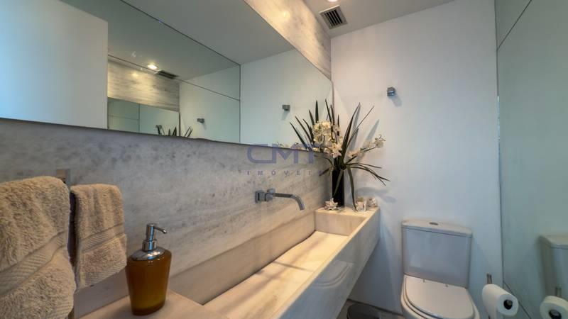 • Ampla sala para 3 ambientes, com piso em mármore, teto rebaixado em gesso e projeto de iluminação planejada.