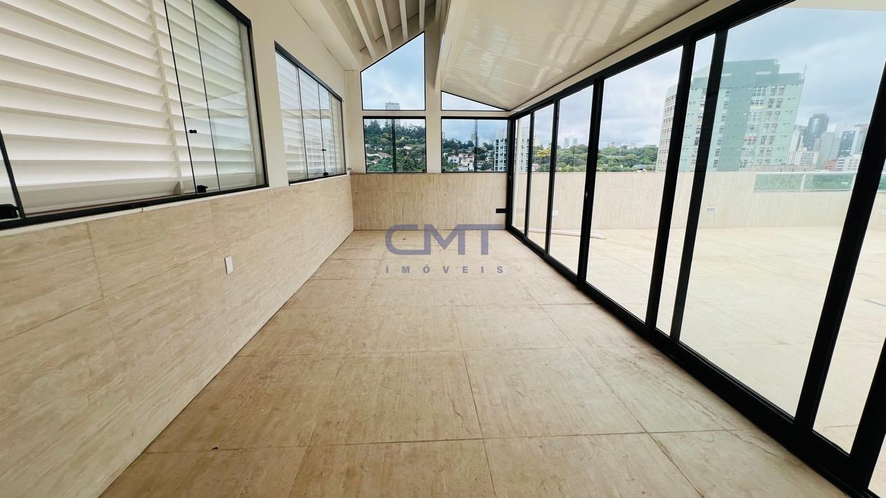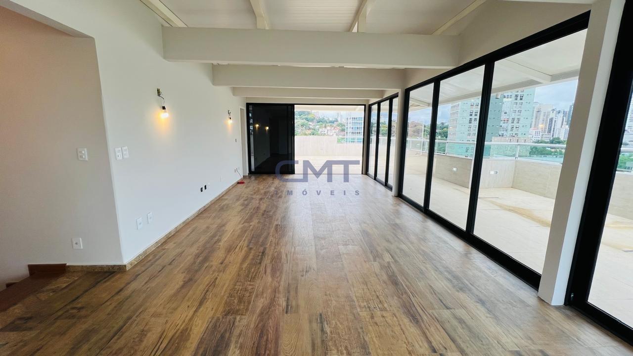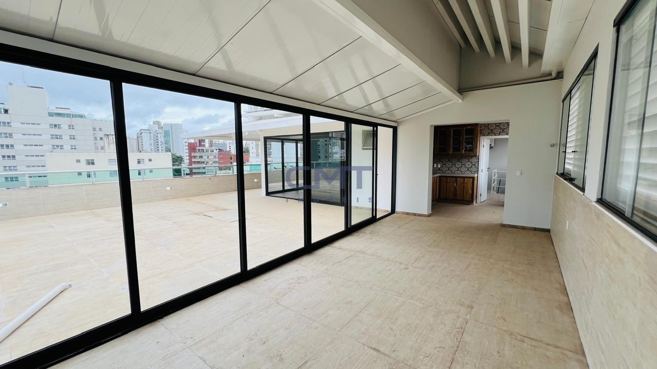 Cobertura ampla e moderna, com 498m², totalmente reformada e acabamento de alto padrão. Prédio 100% revestido, com hall social decorado, 02 elevadores e sistema de energia solar.