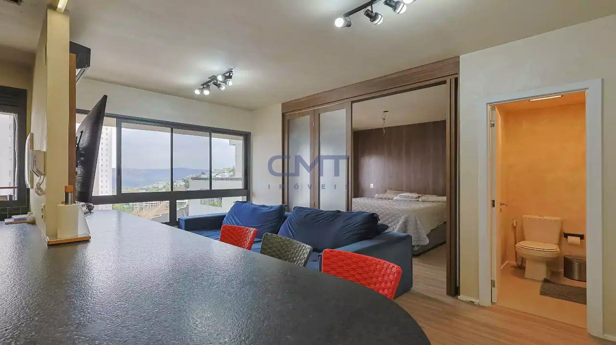 Excelente apartamento de 1 quarto, sendo 1 suíte, sala para 2 ambientes, cozinha integrada e área de serviço.